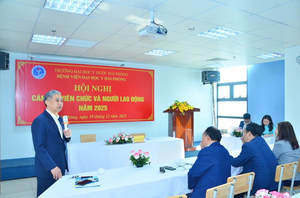 Tại Hội nghị, các đại biểu đã được nghe báo cáo tổng kết hoạt động năm 2025 của Bệnh viện. Trong bối cảnh còn nhiều khó khăn, thách thức, tập thể Bệnh viện Đại học Y Hải Phòng đã phát huy tinh thần đoàn kết, chủ động đổi mới, từng bước khẳng định vị thế của một bệnh viện gắn đào tạo – nghiên cứu – khám chữa bệnh.