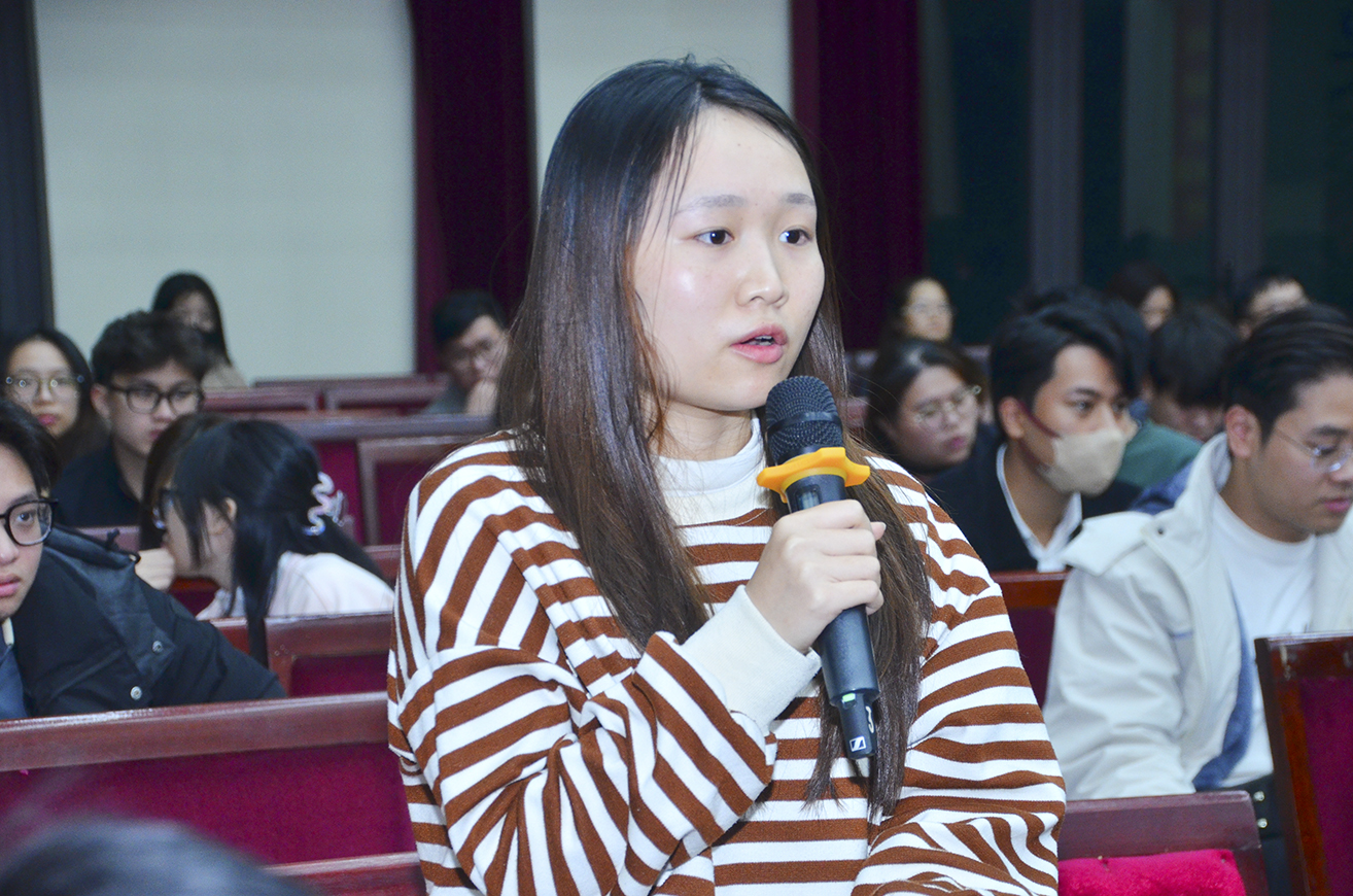 Đ/c. Nguyễn Thị Hiền - Giảng viên Khoa Y học cổ truyền, Ủy viên BTV Đoàn Thanh niên trường đã trình bày tổng hợp các ý kiến của Học viên, Sinh viên toàn trường tại buổi Đối thoại Tại buổi đối thoại đồng chí Nguyễn Thị Hiền - Giảng viên Khoa Y học cổ truyền, Ủy viên BTV Đoàn Thanh niên trường đã trình bày tổng hợp các ý kiến của Học viên, Sinh viên toàn trường các nội dung: về học tập, nghiên cứu, cơ sở vật chất; công tác phát triển đảng trong sinh viên; học bổng, khen thưởng; ký túc xá; hoạt động Đoàn thanh niên - Hội sinh viên…