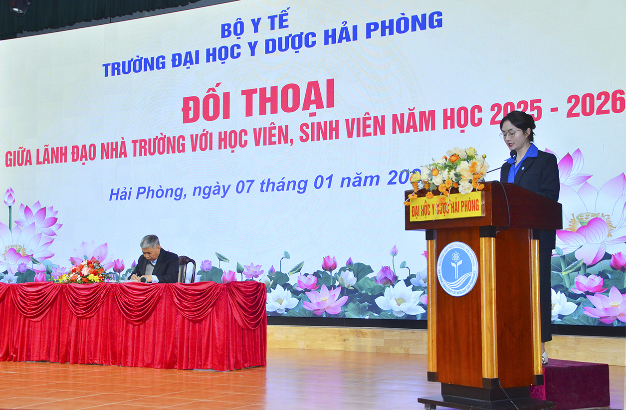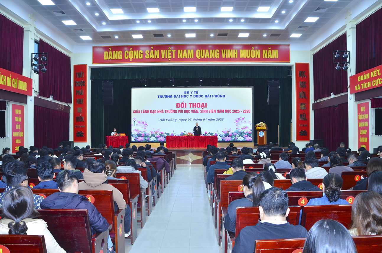 Ngày 07/01/2026, Trường Đại học Y Dược Hải Phòng đã tổ chức Hội nghị Đối thoại giữa Lãnh đạo nhà trường với Học viên, Sinh viên năm học 2025 - 2026 dưới sự chủ trì của PGS.TS. Nguyễn Văn Khải - Hiệu trưởng nhà trường - Đây cũng là kênh thông tin quan trọng nhằm trực tiếp lắng nghe các ý kiến phản hồi của người học, trao đổi, giải đáp những thắc mắc, kiến nghị từ Học viên, Sinh viên trong nhà trường.