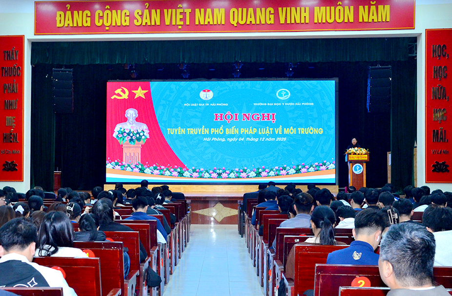 Ngày 04/12/2025, Trường Đại học Y Dược Hải Phòng đã phối hợp cùng Hội Luật gia Thành phố Hải Phòng tổ chức thành công "Hội nghị tuyên truyền, phổ biến pháp luật về môi trường" dành cho cán bộ, giảng viên và sinh viên Nhà trường.