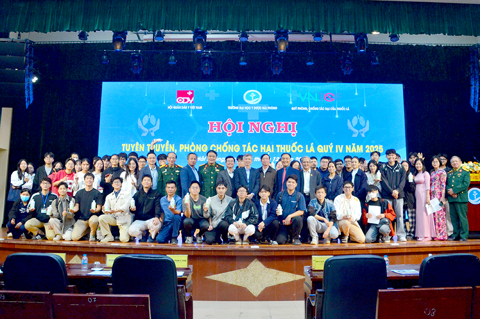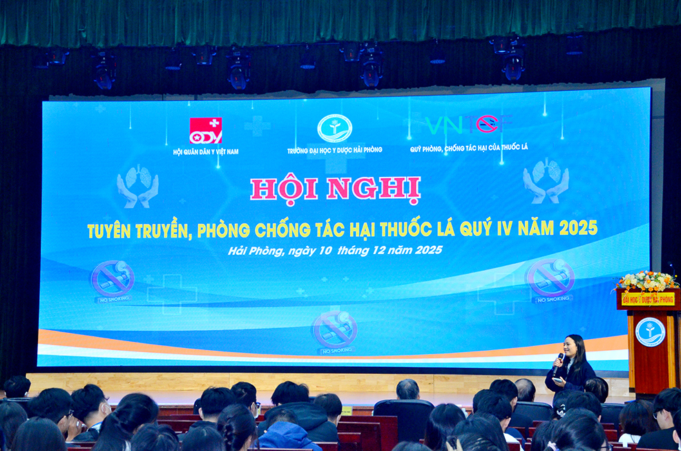 Ngày 10/12/2025, Trường Đại học Y Dược Hải Phòng đã phối hợp cùng Hội Quân Dân Y Việt Nam và Quỹ Phòng, chống tác hại của thuốc lá tổ chức thành công Hội nghị tuyên truyền, phòng chống tác hại thuốc lá Quý IV năm 2025. Chương trình nhằm nâng cao nhận thức cộng đồng và đẩy mạnh các hoạt động bảo vệ sức khỏe người dân trước những nguy cơ nghiêm trọng từ thuốc lá.