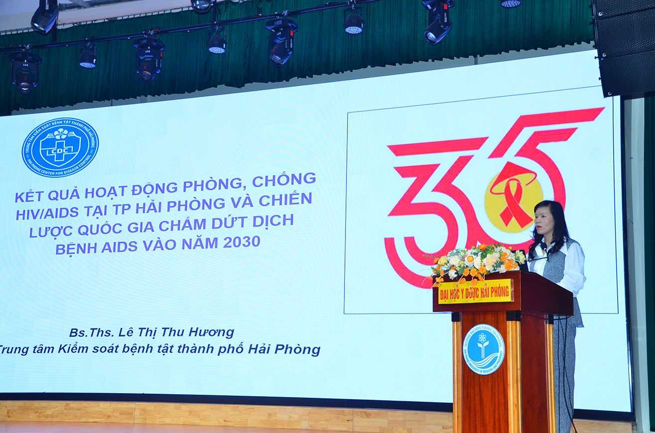 Phát biểu khai mạc Hội nghị, PGS.TS. Đinh Thị Thanh Mai - Phó hiệu trưởng, Trưởng Ban tổ chức, đã nhấn mạnh tầm quan trọng của việc nhìn lại chặng đường 35 năm Hải Phòng nỗ lực ứng phó với HIV/AIDS, đồng thời đề ra những định hướng chiến lược cho tương lai.