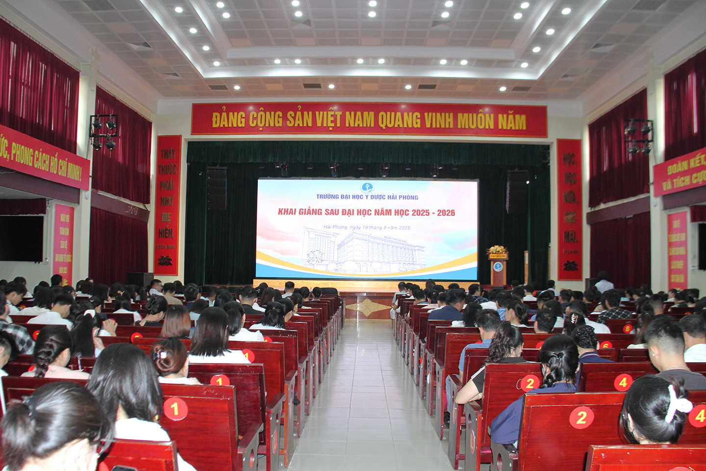 Tại trường Đại học Y Dược Hải Phòng ngày 19/8/2025, nhà trường đã làm thủ tục nhập học và tổ chức Khai giảng năm học 2025 - 2026 cho gần 1000 học viên sau đại học gồm Chuyên khoa II, Chuyên khoa I, Thạc sĩ, Bác sĩ nội trú