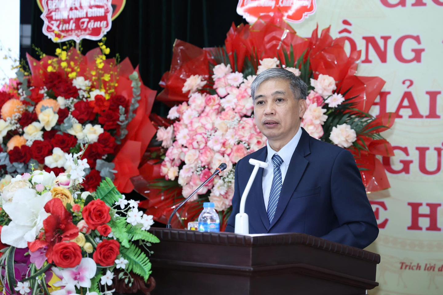 PGS.TS. Nguyễn Văn Khải - Hiệu trưởng nhà trường phát biểu tại buổi khai giảng tại Bệnh viện Đa khoa tỉnh Ninh Bình