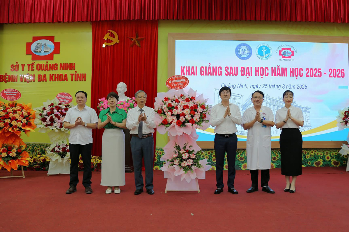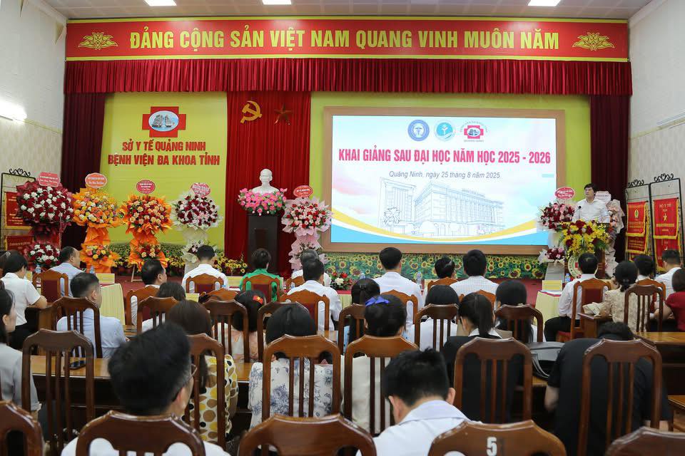 Ngày 25/8/2025, tại Bệnh viện Đa khoa tỉnh Quảng Ninh nhà trường đã phối hợp cùng Bệnh viện tổ chức Khai giảng sau đại học cho 46 học viên là các bác sĩ đang công tác tại các cơ sở y tế trên địa bàn tỉnh, gồm các lớp chuyên ngành Ngoại – Chấn thương chỉnh hình có 22 bác sĩ thuộc 9 đơn vị; chuyên ngành Nội có 15 bác sĩ thuộc 5 đơn vị và chuyên ngành Nhi có 10 bác sĩ của 4 đơn vị.
