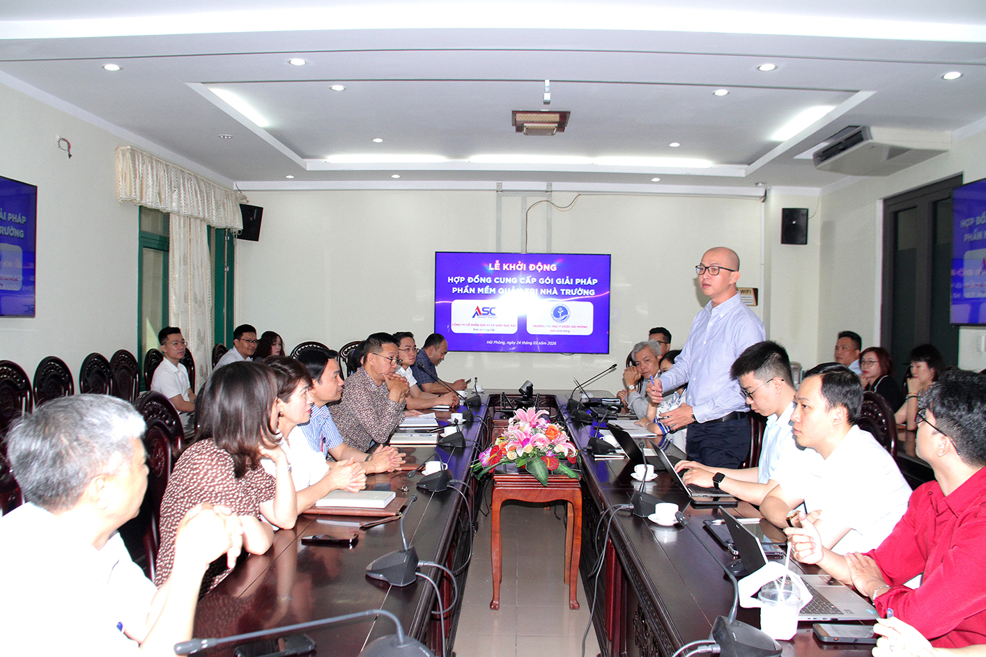 Ngày 24/03/2026, Trường Đại học Y Dược Hải Phòng (HPMU) đã phối hợp cùng Công ty Cổ phần giải pháp giáo dục ASC chính thức tổ chức buổi lễ khởi động dự án triển khai hệ thống phần mềm quản trị tổng thể. Đây là bước đi chiến lược trong lộ trình hiện đại hóa quy trình vận hành và nâng cao chất lượng đào tạo của Nhà trường.