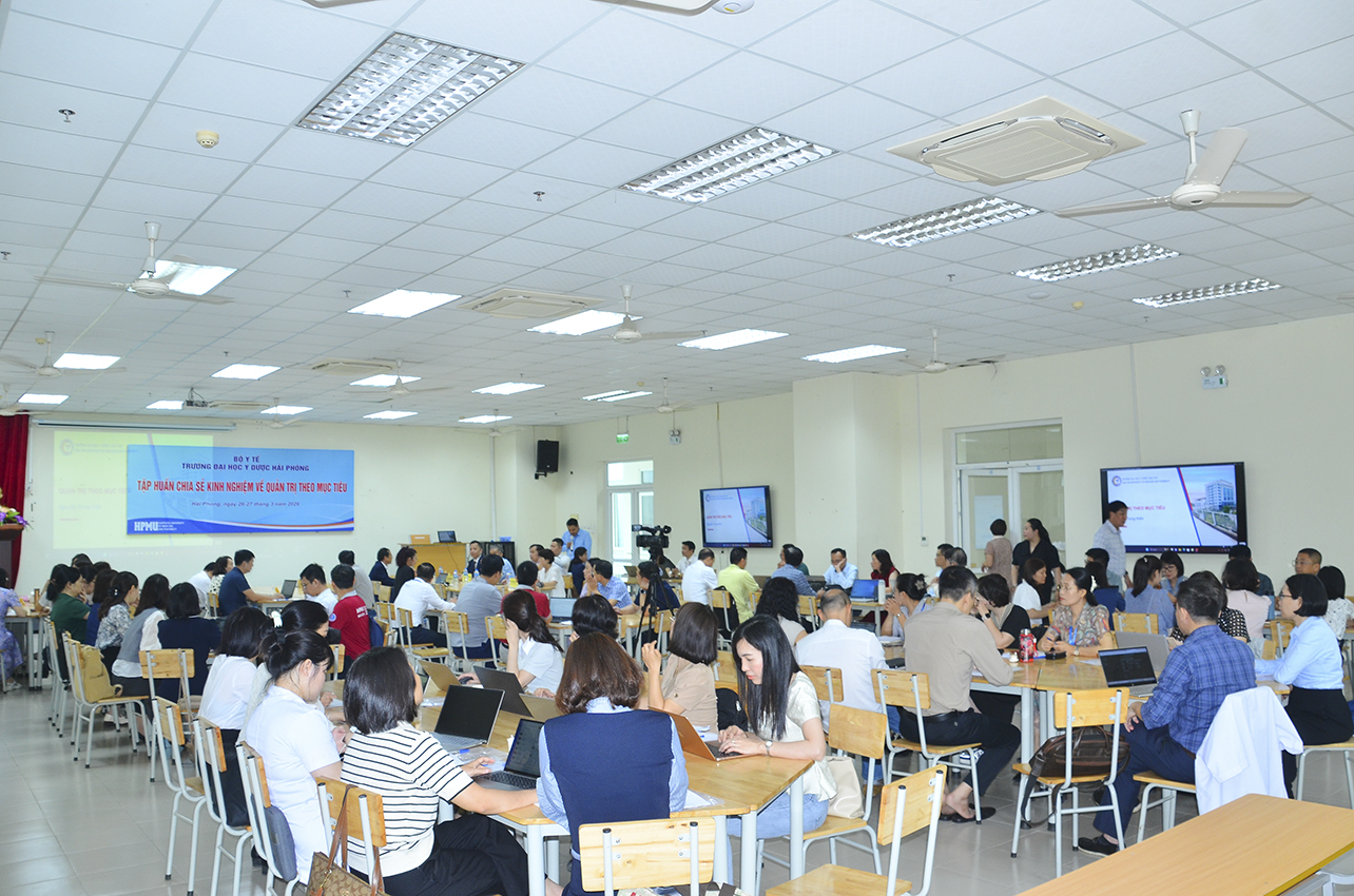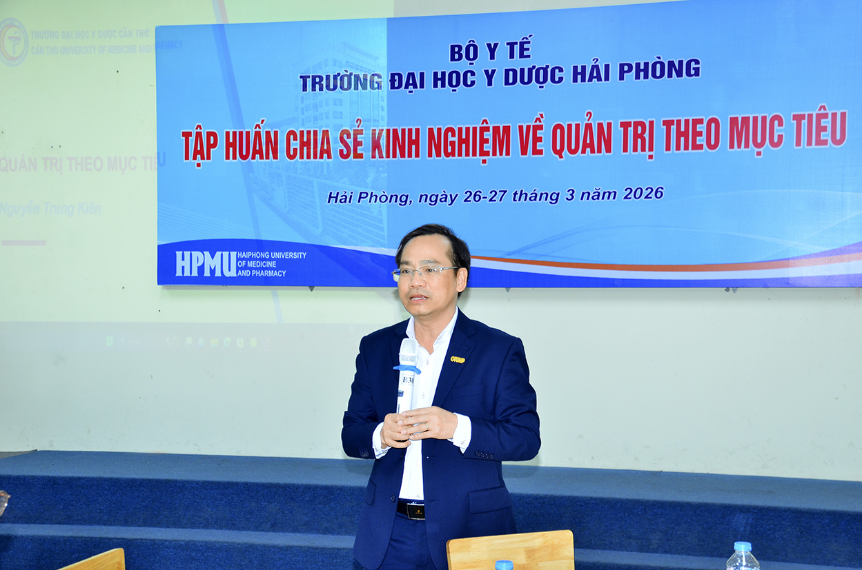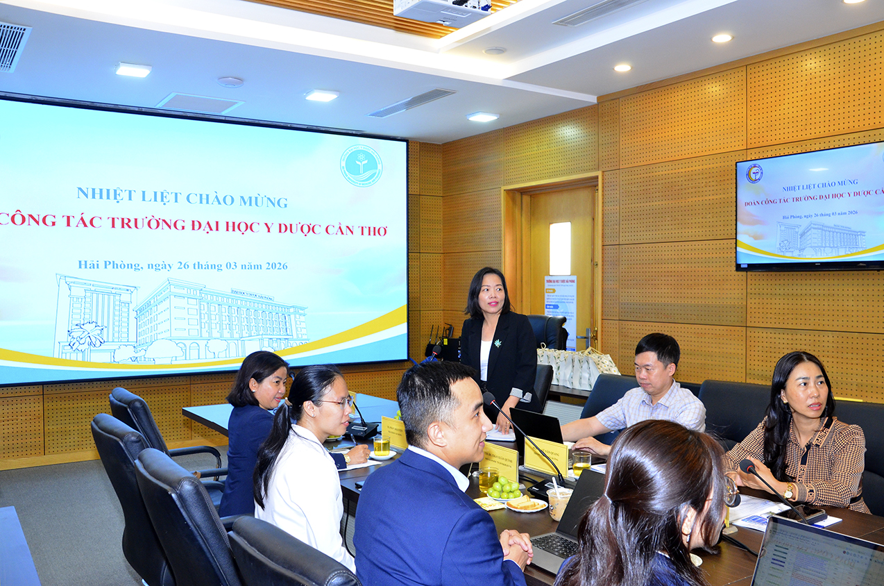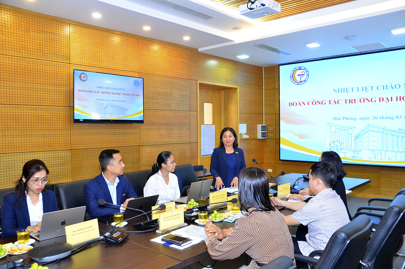Ngày 26/3/2026, Trường Đại học Y Dược Hải Phòng đã tổ chức buổi tiếp đón và làm việc với đoàn công tác Trường Đại học Y Dược Cần Thơ trong khuôn khổ chương trình "Tập huấn chia sẻ kinh nghiệm về Quản trị theo mục tiêu".