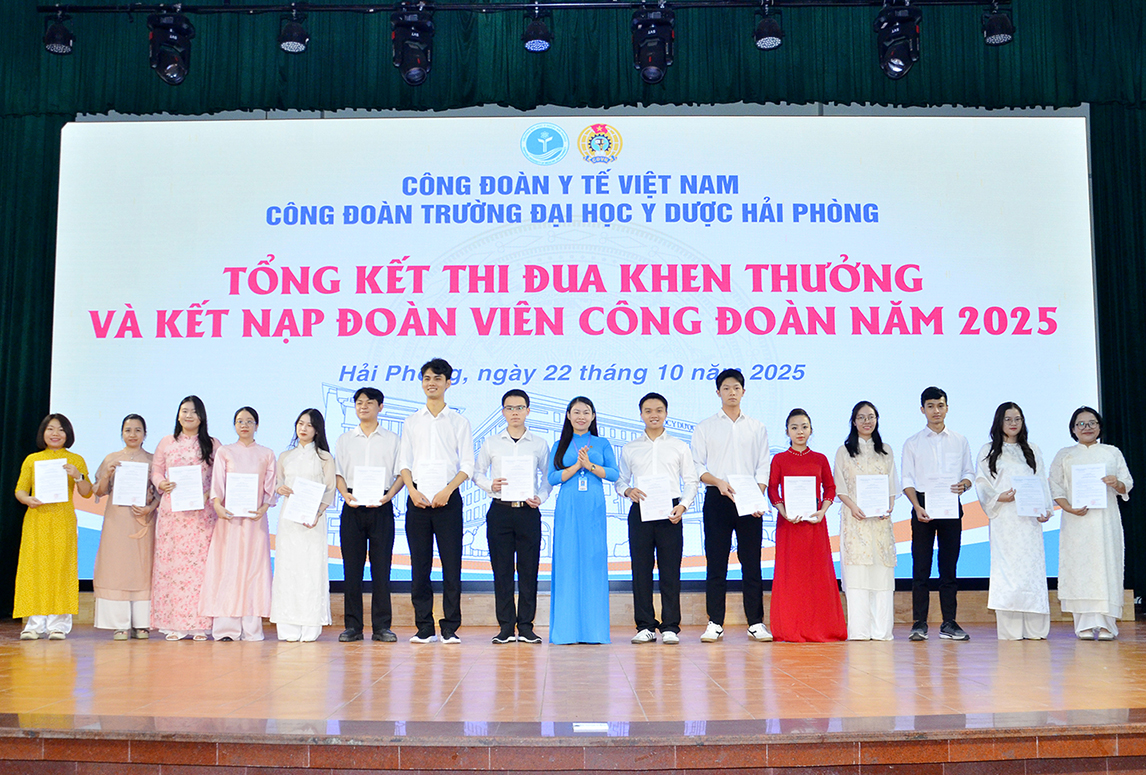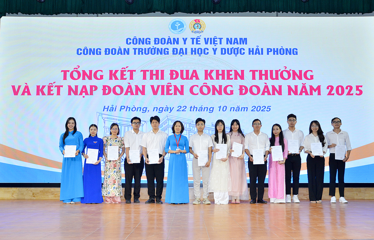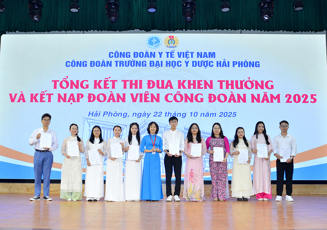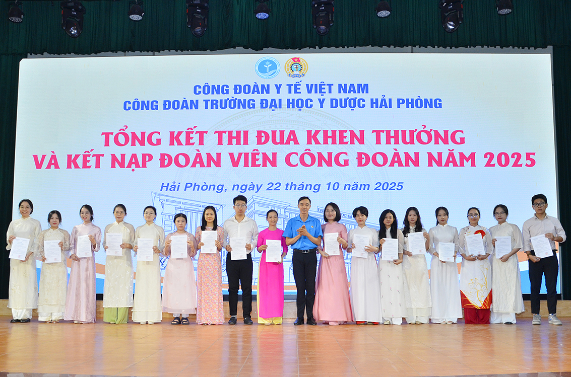 Hội nghị Tổng kết công tác Công đoàn năm học 2024 - 2025 và Lễ Kết nạp đoàn viên mới của Trường Đại học Y Dược Hải Phòng đã kết thúc thành công tốt đẹp, trong không khí phấn khởi và tin tưởng. Những kết quả đạt được là nền tảng vững chắc để tập thể đoàn viên, người lao động Nhà trường tiếp tục đoàn kết, thi đua, quyết tâm hoàn thành thắng lợi nhiệm vụ năm học 2025 - 2026.