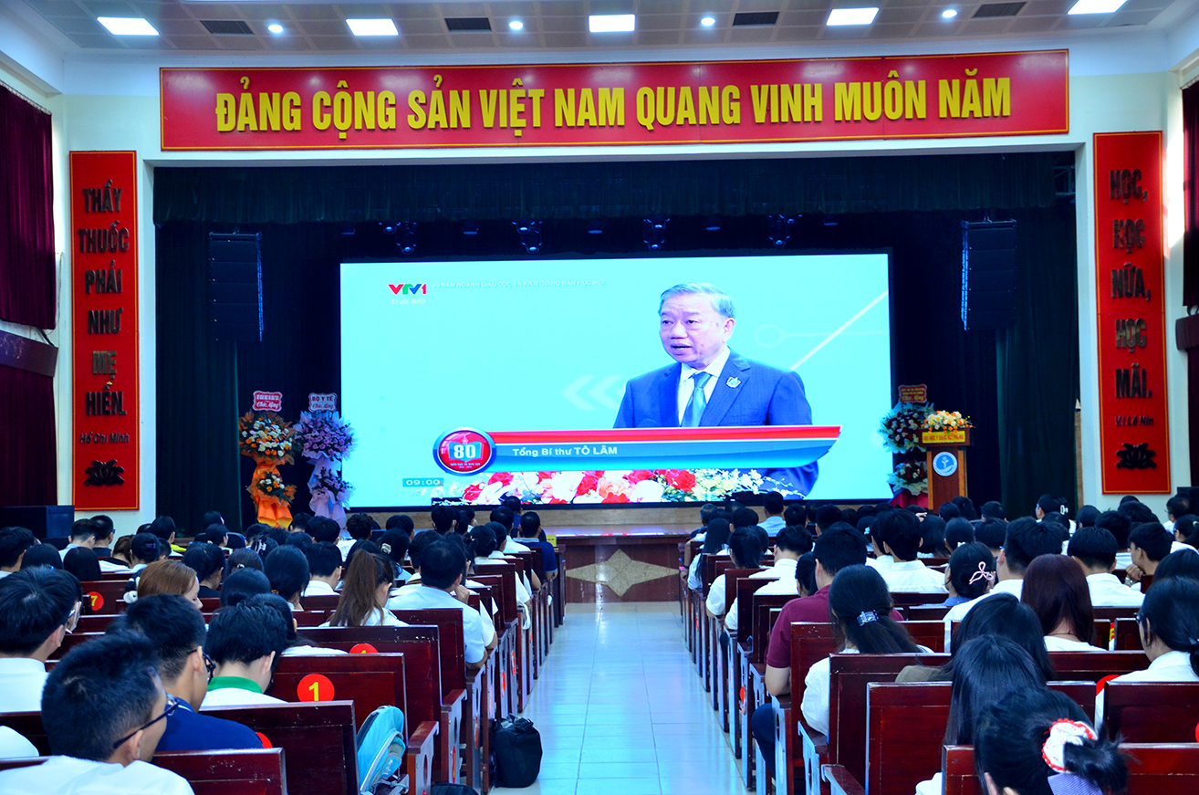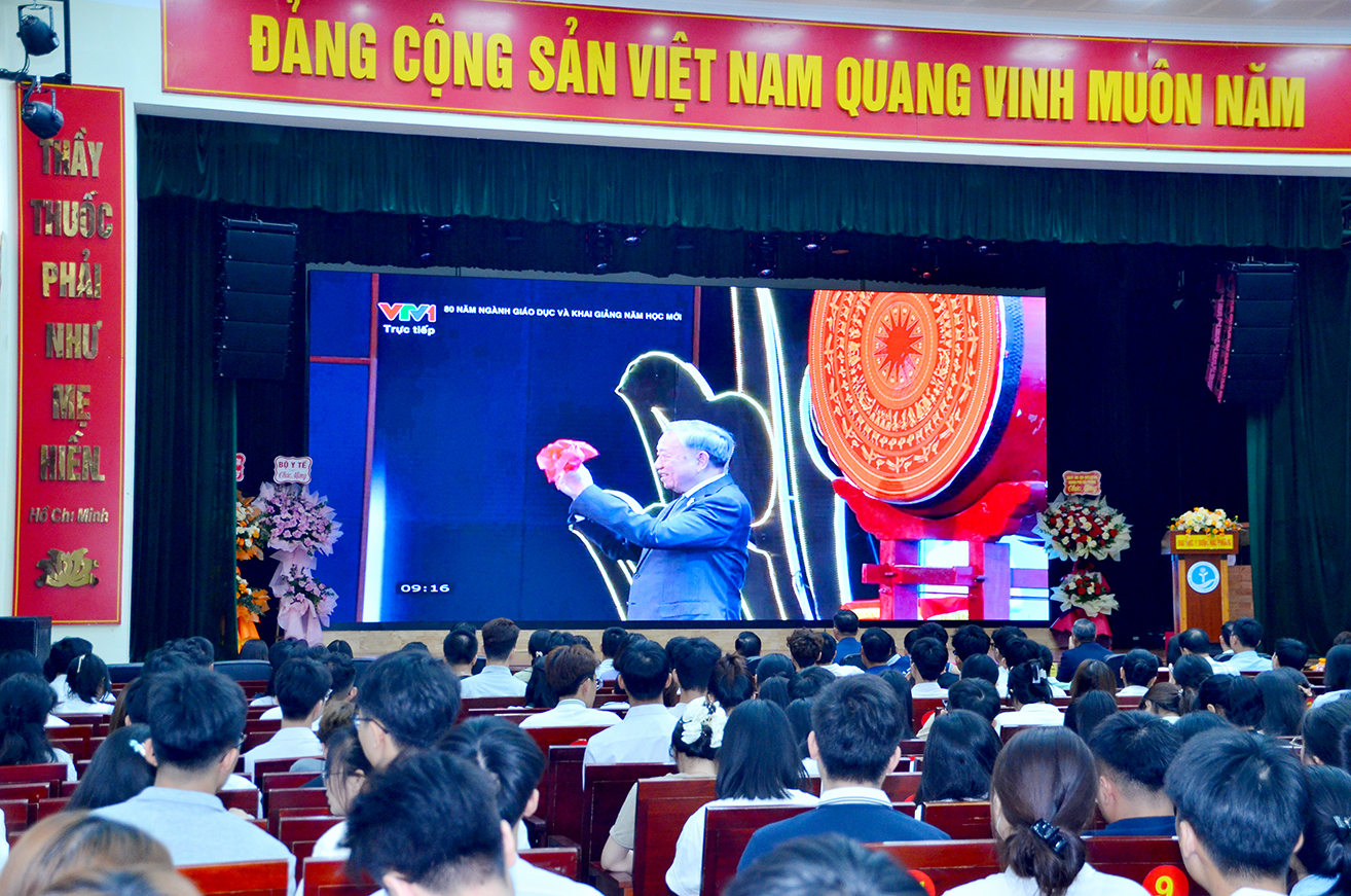 Tại Lễ Khai giảng PGS.TS. Nguyễn Văn Khải - Hiệu trưởng, Giám đốc Bệnh viện trường đã phát biểu chúc mừng gần 1.700 tân sinh viên đã vượt qua kỳ thi tuyển sinh vô cùng quan trọng trong quãng thời gian học tập 12 năm học sinh để có mặt ở nhà trường hôm nay. Đồng thời, thầy Hiệu trưởng căn dặn các em tân sinh viên: Trước mắt các em là một chặng đường tương đối dài và chắc chắn sẽ có không ít khó khăn vất vả, để đạt được mục tiêu cao nhất trong học tập, rèn luyện trong từng năm học và toàn khoá học các em cần phải cố gắng, cố gắng hơn nữa, nố lực, nỗ lực hơn nữa để gặt hái được thành công trong tương lai. Thầy nhấn mạnh mục tiêu của nhà trường là sẽ nâng cao hiệu lực, hiệu quả công tác quản lý nhà nước về giáo dục; tiếp tục đổi mới, nâng cao chất lượng đào tạo; đảm bảo công bằng có chất lượng cho người học; tạo mọi điều kiên thuận lợi nhất cho các em sinh viên được học tập, nghiên cứu khoa học; phát triển đội ngũ giảng viên, cán bộ quản lý đáp ứng yêu cầu đổi mới giáo dục và đào tạo.
