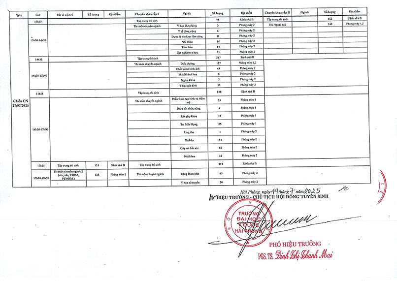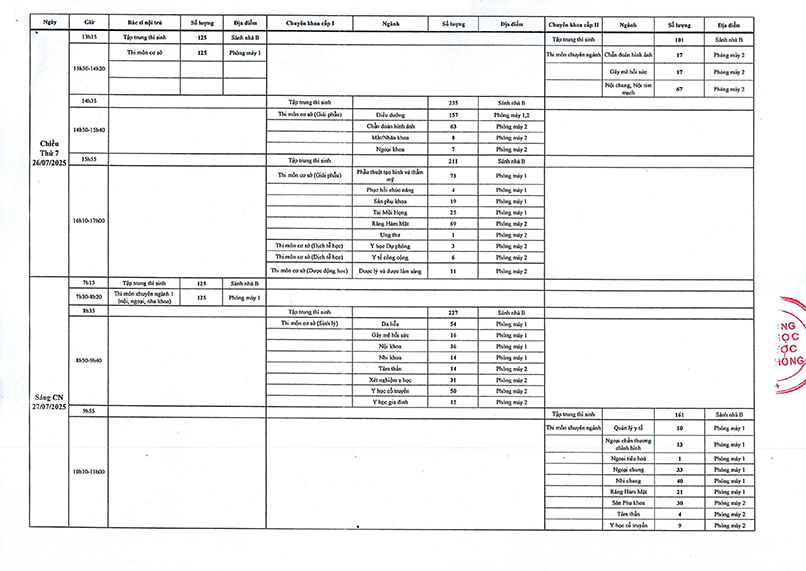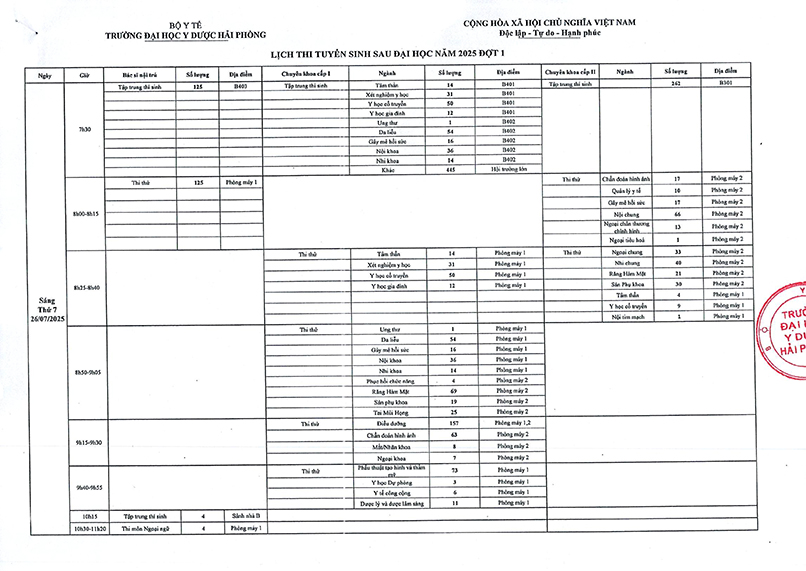 Hội đồng tuyển sinh trường Đại học Y Dược Hải Phòng thông báo lịch thi tuyển sinh sau đại học đợt 1 năm 2025 thời gian được tổ chức từ ngày 26-27/7/2025