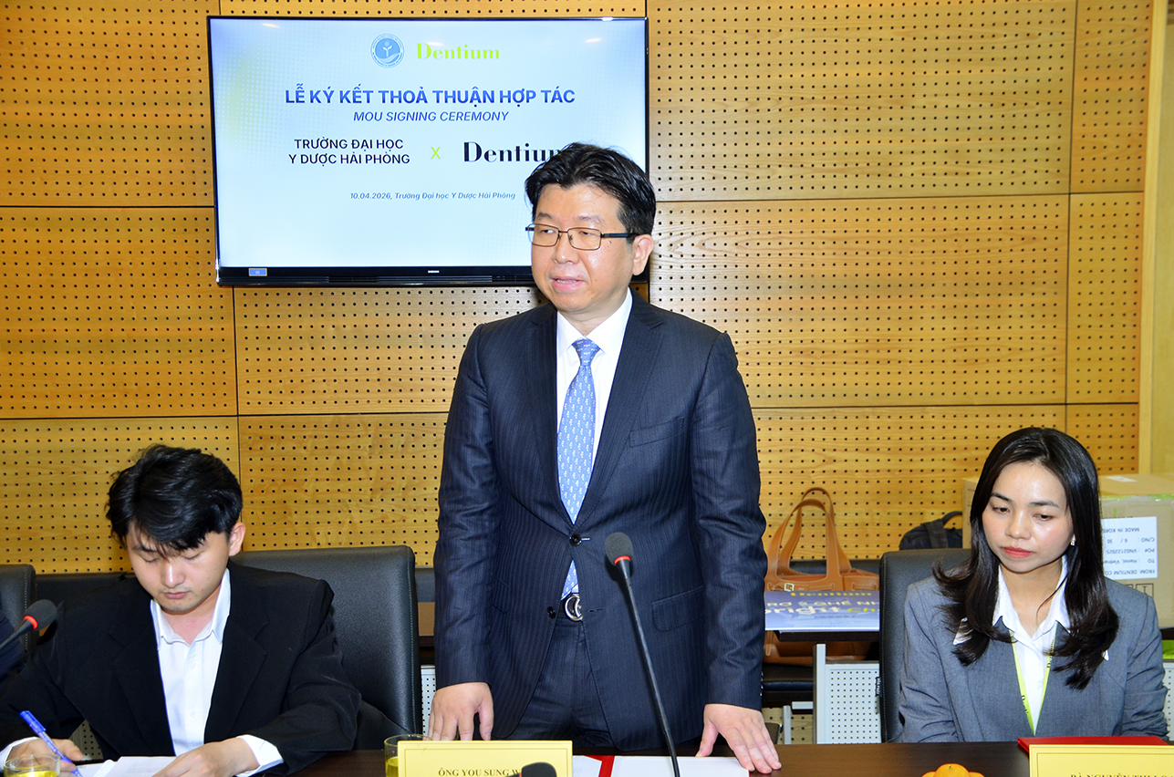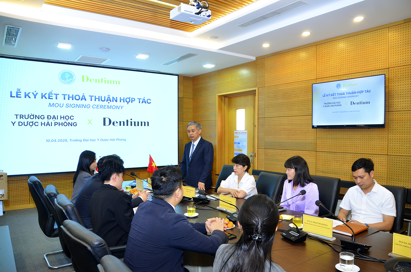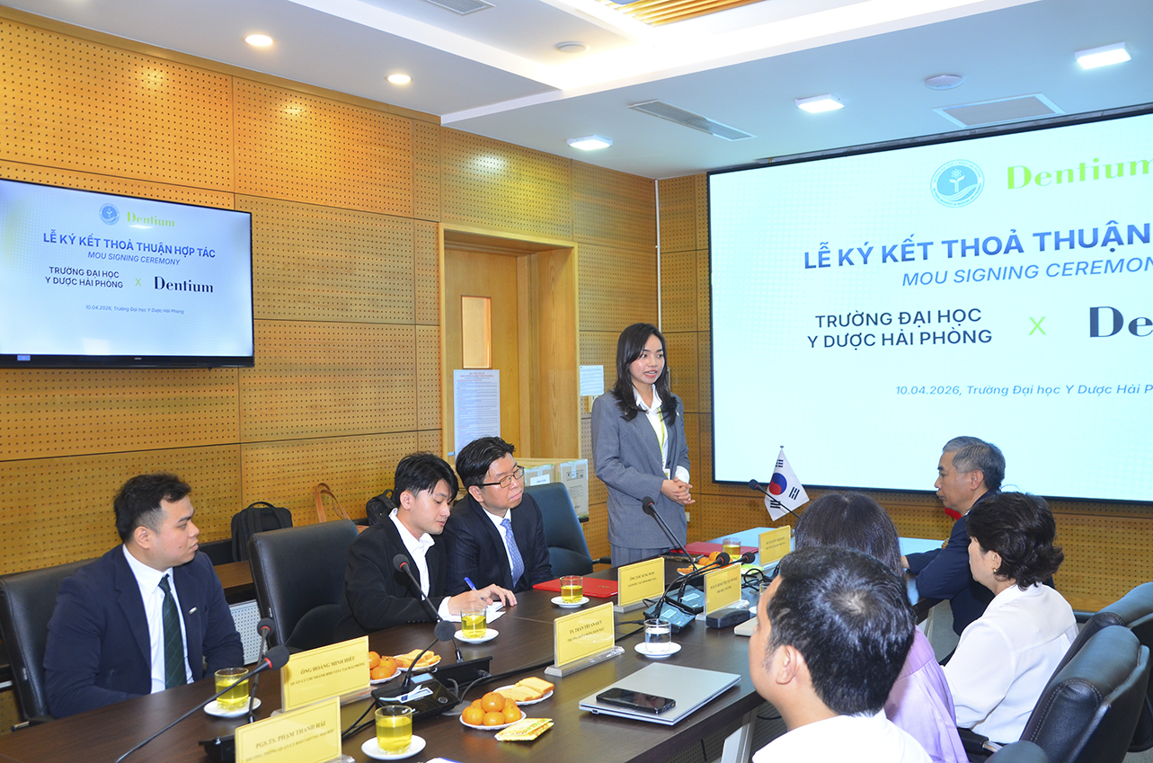 Ngày 10/04/2026, tại Trường Đại học Y Dược Hải Phòng đã long trọng tổ chức lễ ký kết bản ghi nhớ hợp tác (MOU) cùng Chi nhánh Công ty TNHH BMS Vina tại Hà Nội. Sự kiện này đánh dấu bước tiến quan trọng trong việc thúc đẩy đào tạo và nghiên cứu chuyên sâu lĩnh vực Răng Hàm Mặt.