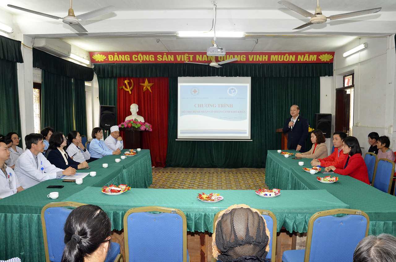 Tới dự chương trình, về phía Hội chữ thập đỏ thành phố Hải Phòng có Ông Bùi Mạnh Phúc – Chủ tịch Hội; về phía Bệnh viện Đại học Y Hải Phòng có PGS.TS. Nguyễn Huy Điện – Phó Giám đốc Bệnh viện cùng lãnh đạo các Khoa, Phòng, đại diện bệnh nhân các Khoa.